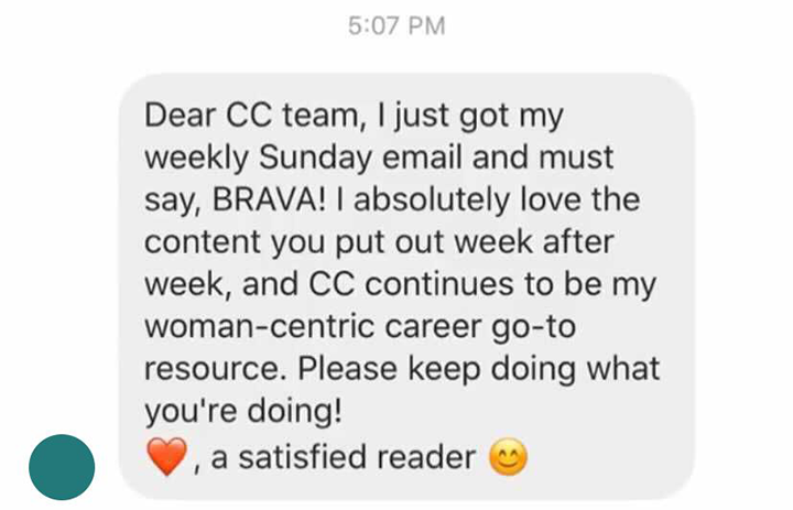 Here are just a few testimonials from people who have seen real results from Career Contessa. Join our newsletter to start making progress in your career!
